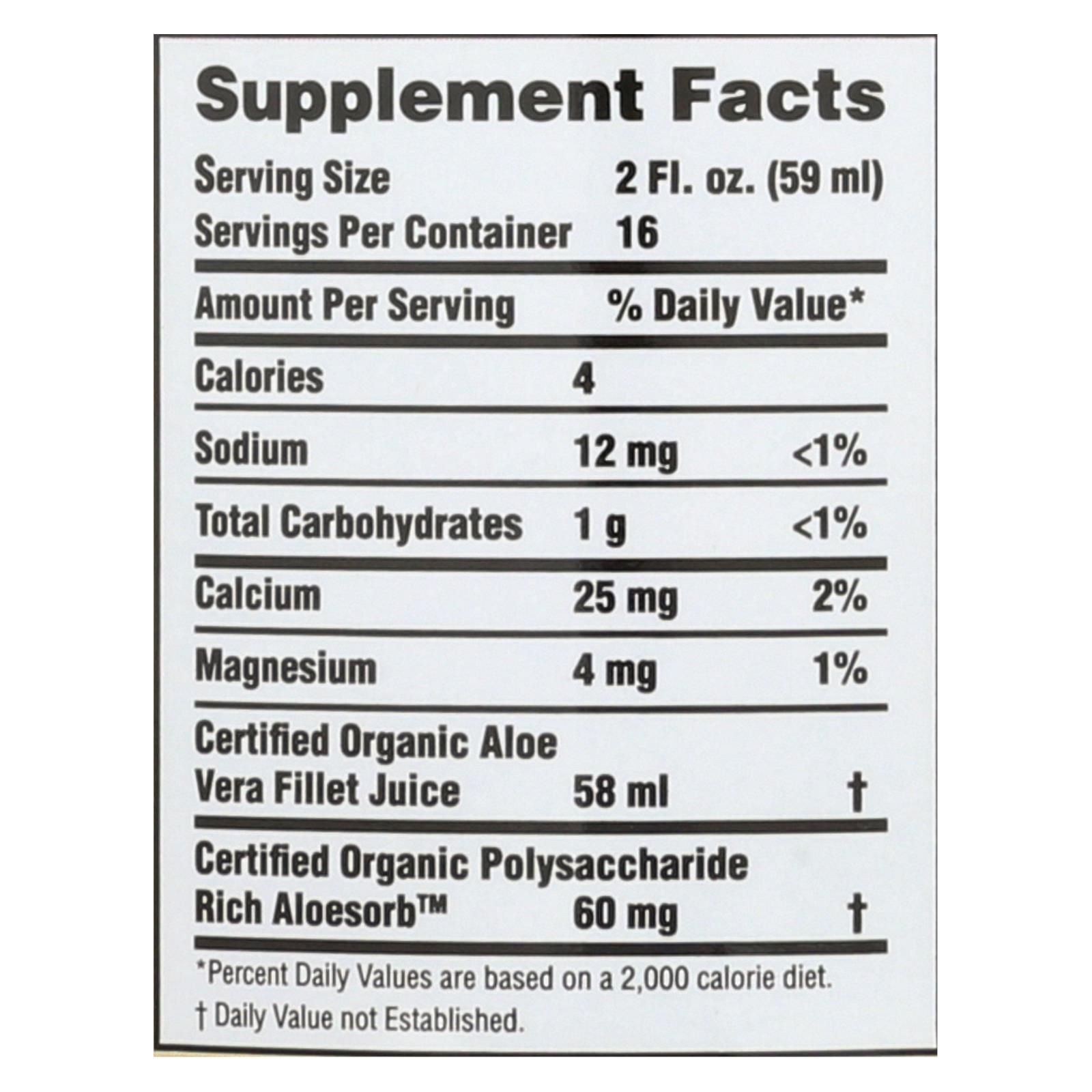 Lily of the desert preservative free inner fillet aloe vera juice is made from certified usda organic ingredients including 99% aloe vera juice rich in antioxidants. One 32 oz. Bottle of lily of the desert is a kosher dietary supplement with 25 mg. Of calcium per serving to help support a healthy immune system and digestive regularity.