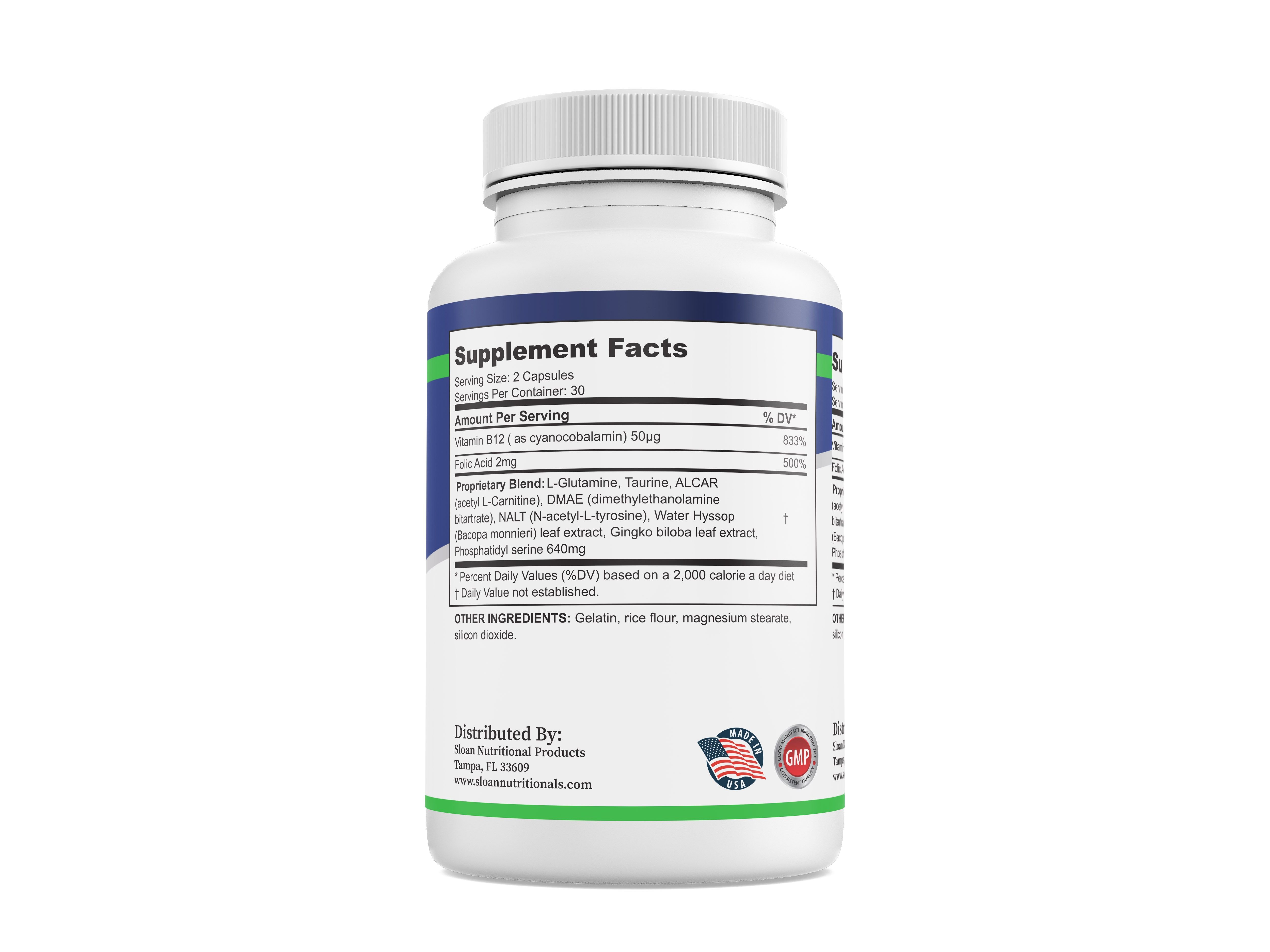 Science now shows that L-Glutamine benefits are abundant. Promoting Brain health, a precursor to the neurotransmitter glutamate in your brain, glutamine is key to boosting your brain health. Why? A disruption of the glutamine-glutamate cycle can result in all kinds of brain problems. Glutamine can also help stall brain aging. Mitochondrial dysfunction causes abnormal increases in the neurotransmitter glutamate and, again, puts the brain at risk for developing problems. Taurine is an amino acid whose concentrations in the brain decline with age. Taurine protects against environmental toxins, reduces brain inflammation, and stimulates neuron formation. Acetyl L-Carnitine (ALCAR) has several benefits for brain function, may improve focus, quicker thinking, and better recall. Protection against dangerous toxins and support for brain energy and mitochondrial function. May enhance overall cognitive health and overall energy levels. DMAE (dimethylaminoethylamine) may enhance mood and memory and may boost the neurotransmitter acetylcholine. May reduce the buildup of the 'age pigment' in the brain,linked to cognitive decline and may help to regulate functions controlled by the brain, including REM sleep. NALT (N-Acetyl-L-Tyrosine) may support the production of catecholamines like dopamine, norepinephrine, and epinephrine, which regulate mood, cogntion, and behavior. It may also improve Focus, Mood, and Memory enhancing blood flow to the brain and uptake of glucose and oxygen by brain cells. Water hyssop (Bacopa Monnieri) has been found to enhance brain development and improve concentration and attention span in humans. It provides antioxidant protection to the brain and promotes normal cerebral blood flow, synaptic function, nerve transmission, and regulation of neurotransmitters such as dopamine. Ginkgo Biloba may help to sharpen mental clarity, and help guard the brain against age-related decline and psychiatric challenges. May enhance cognitive performance by increasing blood flow to the brain and Improve decision-making and concentration, especially in individuals struggling with mental fatigue. Phosphatidylserine (PS) benefits for brain function in humans include Mood regulation: PS plays a role in mood regulation. Restorative sleep: PS is essential for optimally functioning brain cells and preserving cell integrity. Cognitive functions: PS is involved in attention, focus, processing speed, and memory.Protection of brain cells: PS protects brain cells and helps neurotransmitters communicate more effectively. Brain booster and mood improver: PS has the potential to offer vast benefits as a brain booster and mood improver.