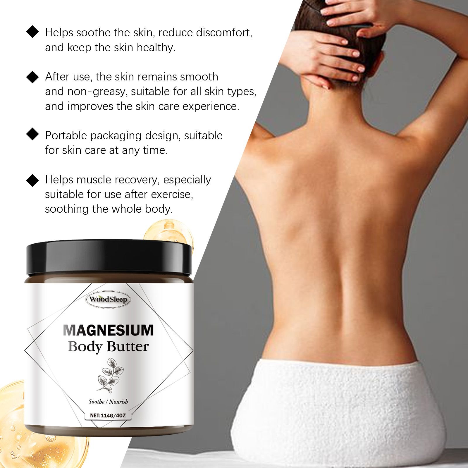 Our magnesium moisturizer contains glycerin, magnesium chloride, shea butter. It can help muscle tension and soreness and ease quickly after use. The way to use it is simple: 1. Clean and dry the skin. 2. Apply evenly all over your . 3. Gently massage until absorbed. After use, it helps to the and mind, physical discomfort, and sleep quality.